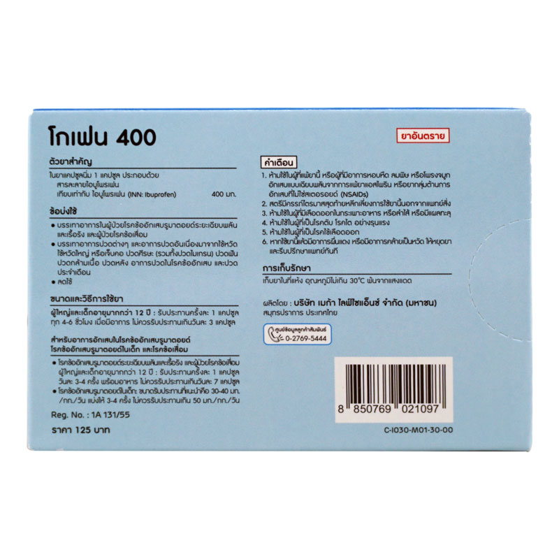 รับประทานครั้งละ 1 แคปซูล ทุก 4-6 ชั่วโมง หรือเมื่อมีอาการ ไม่ควรรับประทานเกิน 3 แคปซูล ต่อวัน