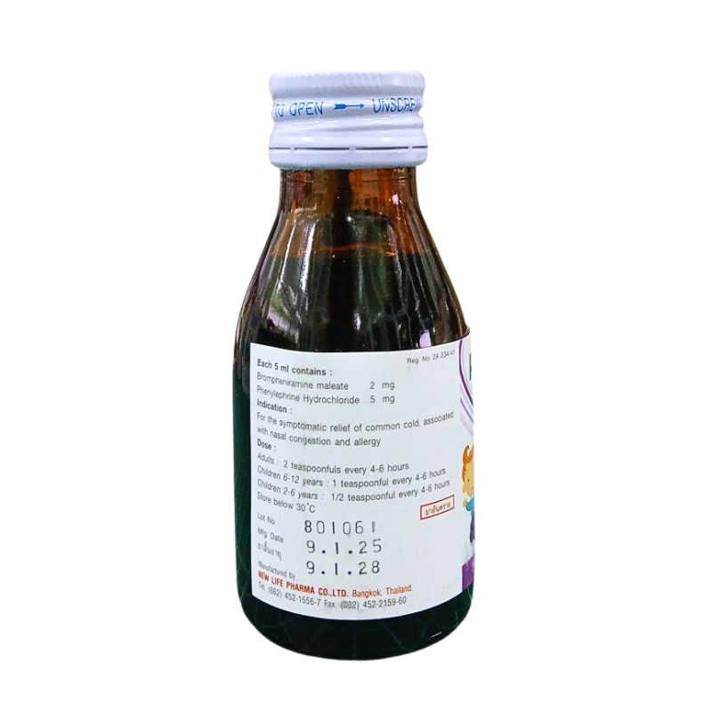 • เด็กอายุ 6-12 ปี ครั้งละ 1 ช้อนชา ทุก 4-6 ชั่วโมง