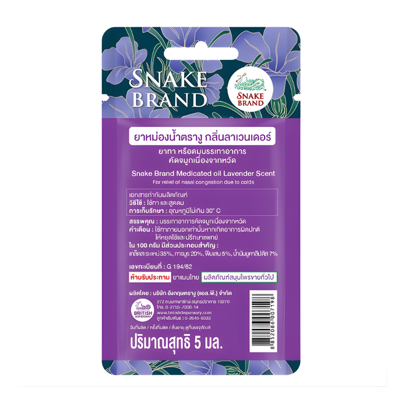 ยาหม่องน้ำลูกกลิ้ง ตรางู (ม่วง) Lavender 5ml