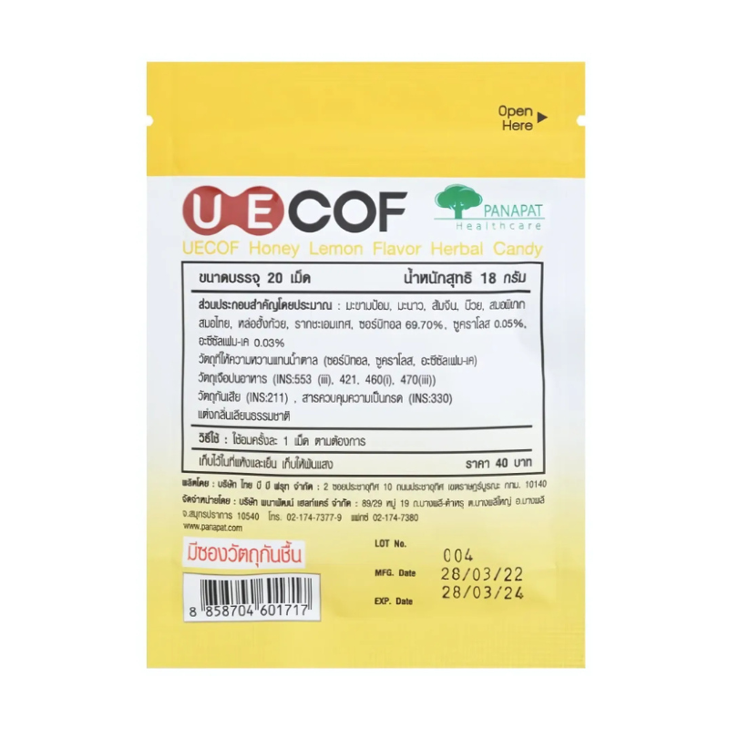 ยาอมยูอีคอฟ 20เม็ด (เหลือง) น้ำผึ้งมะนาว / กล.20ซอง