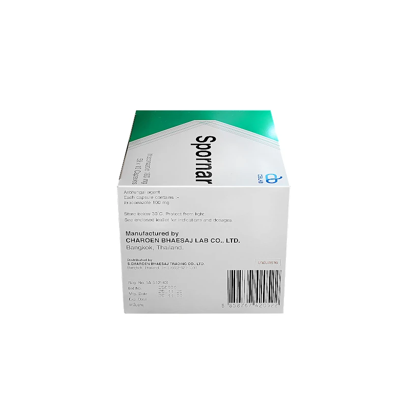 สปอร์นาร์ 100mg (กล.ใหญ่) Spornar 50×10’s