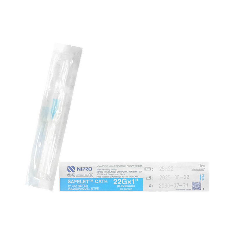 เข็มให้น้ำเกลือ Nipro (ฟ้า) Safelet cath 22Gx1″ / กล.50ชิ้น